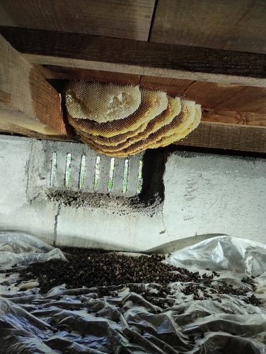 床下に出来たミツバチの駆除を実施しました。 かなり大きなな巣でしたが、上手く作業…